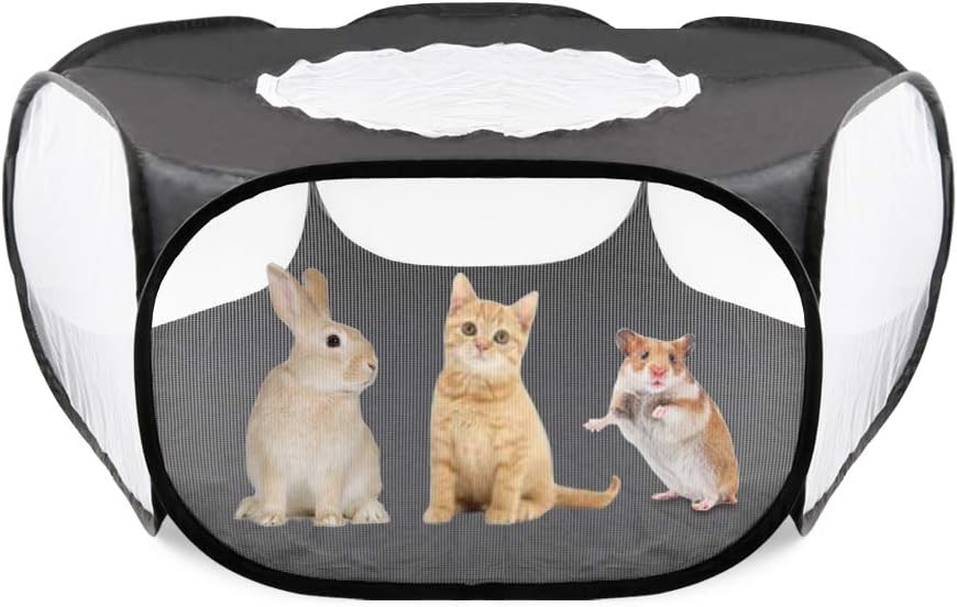 Cage Cochon d'Inde,Cage Hamster avec Cochon d'Inde De Clôture De Jardin Transparent Respirant Extérieur/Intérieur Portable Enclos Lapin Interieur for Hamster Rabbit Ferret Bunny Rat Black