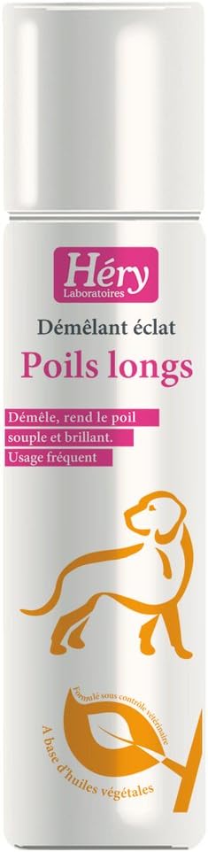 Démêlant éclat Poils longs Héry : Démêlant éclat Poils longs pour chien des Laboratoires Héry.Formulé sous contrôle vétérinaire, ce démêlant contient un complexe exclusif d'actifs à base d'huiles végétales, aux vertus démêlantes, lustrantes et gainantes. Il convient par