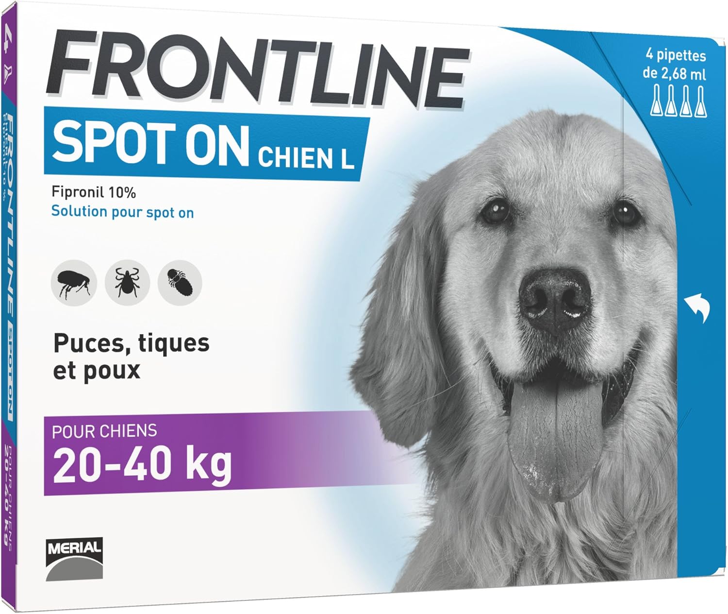 FRONTLINE Spot-on Chien - Anti-puces et anti-tiques pour chien - 20-40kg - 4 pipettes