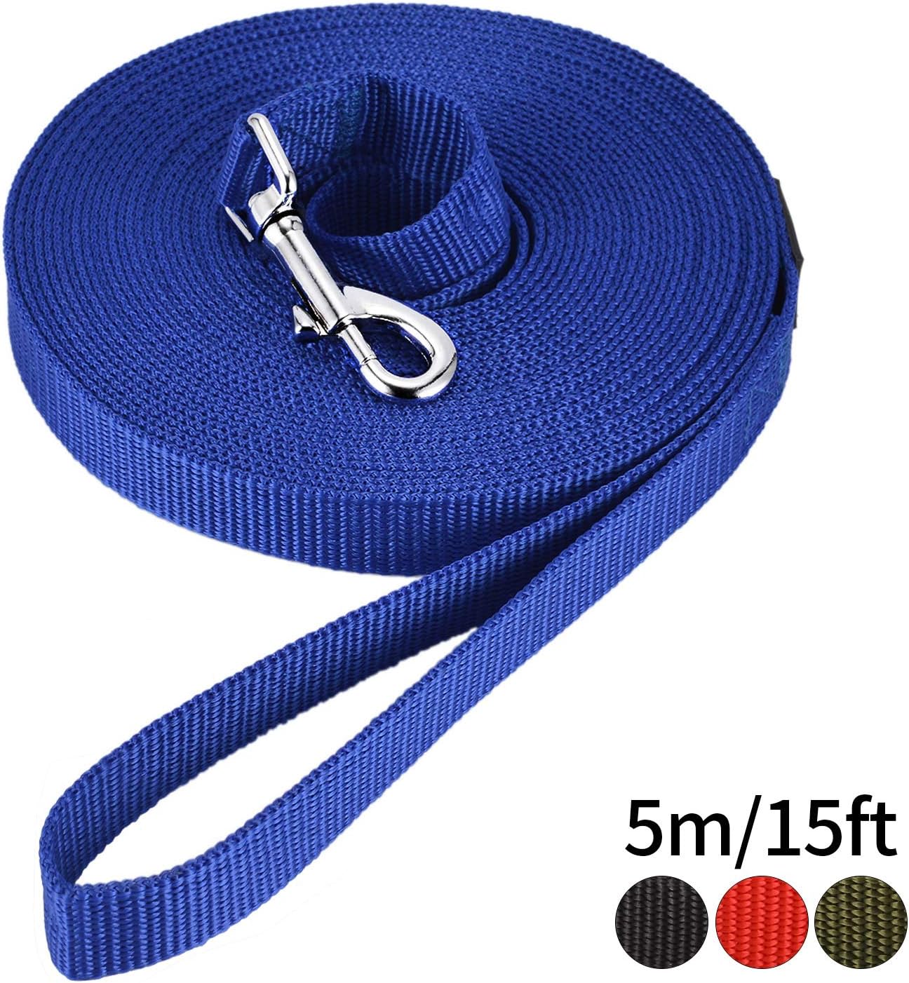 HAPPY HACHI Laisse de Dressage pour Chien (5m Bleu) Longue Sangle en Nylon Mains Libre pour Chiens Chats Animal de Compagnie Promenade Arrimage Jogging