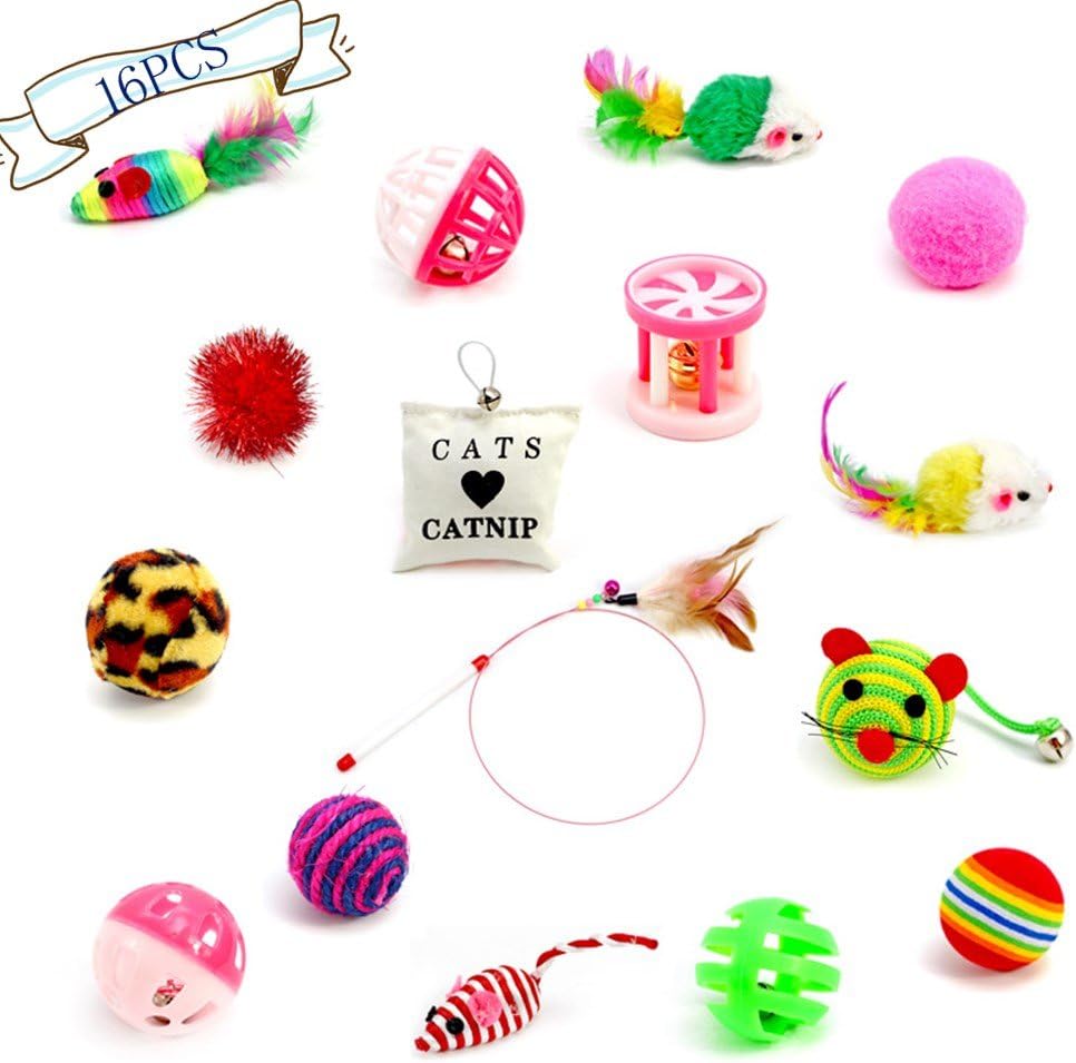 Kiao Jouet Pour Chats Pack 16 pièces-Jouet à Plume-Balles-Jouets à l'herbe-Jouet à Mâcher,etc