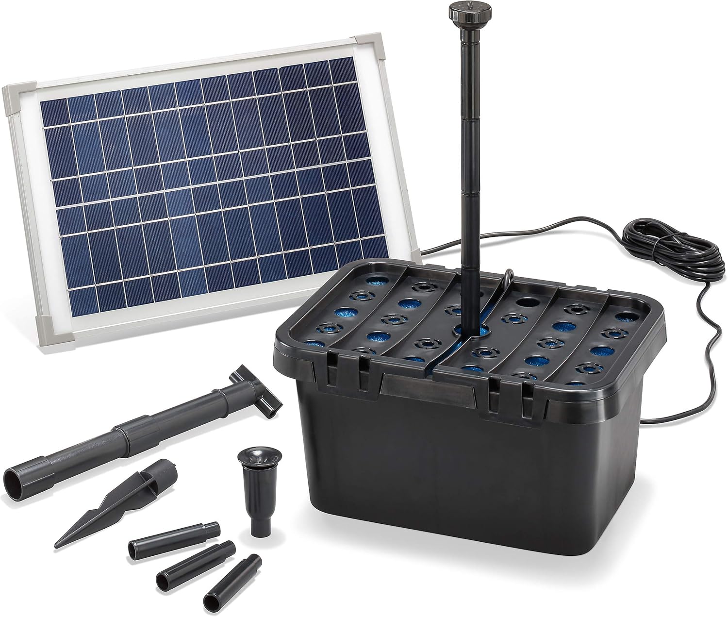 Kit complet de filtres solaires pour étang professionnel - Débit 650 l/h + module solaire 12 W - Kit complet pour étang de jardin jusqu'à 2000 l - Avec jeu d'eau décoratif - Pompe solaire esotec 100901