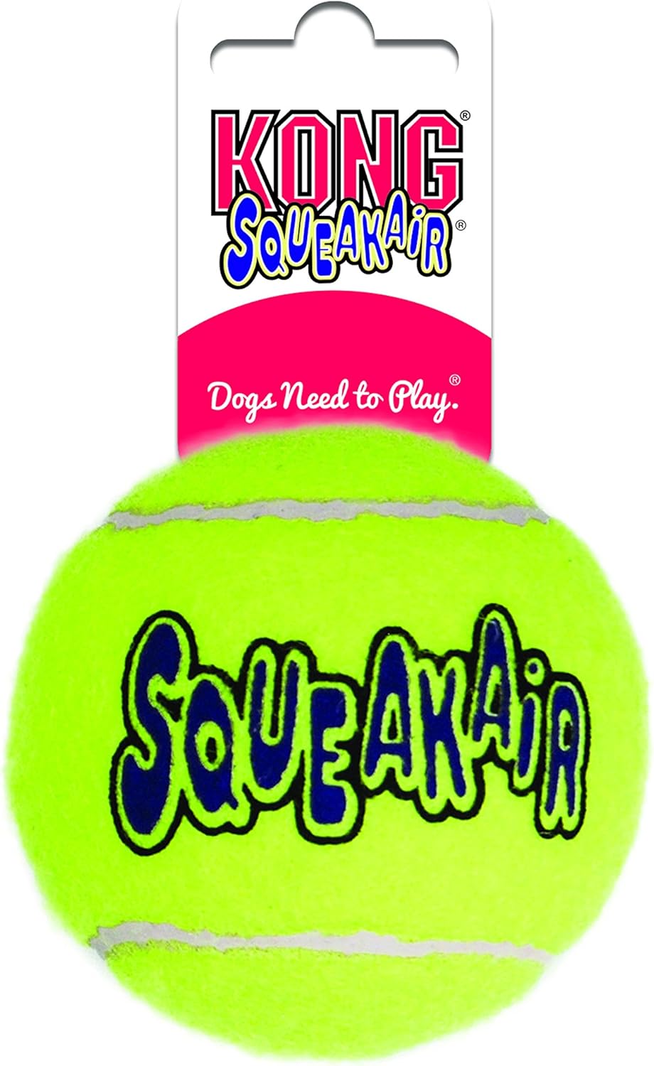 Le KONG SqueakAir Ball est une combinaison de deux jouets classiques pour chien : la balle de tennis et le jouet couineur, ce qui en fait le jouet parfait pour le lancer/rapporter. Notre robuste SqueakAir Tennis Ball de première qualité n’usera pas les dents de votre chien. Elle est recouverte d’un feutre spécial non abrasif.