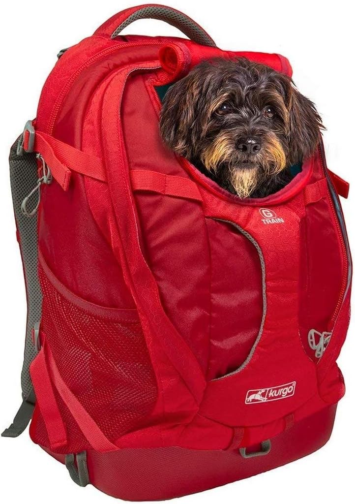Kurgo Sac à dos de Transport pour Petits Chiens et Chats G-Train, Approuvé par les Compagnies Aériennes, Sac de Voyage pour Animaux de Compagnie, fond étanche, pour Randonnée et Voyages, Rouge