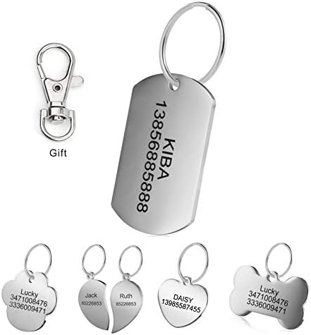 LYL Acier Inoxydable Pet ID Tags personnalisé personnalisée Dog Tags gravé Avant/arrière pour Chien et Chat avec différentes Formes (M, Rectangle)