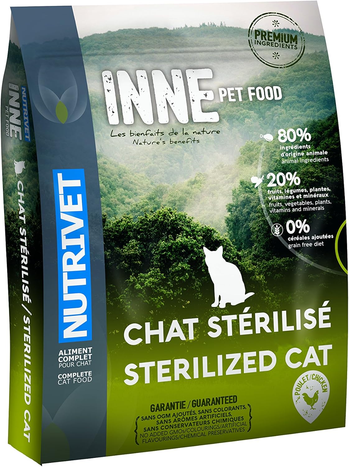 INNE PET FOOD CHAT STERILISÉ est formulé avec du L-carnitine pour réduire les graisses, il est équilibré en protéines et en matières grasse afin de limiter la prise de poids.