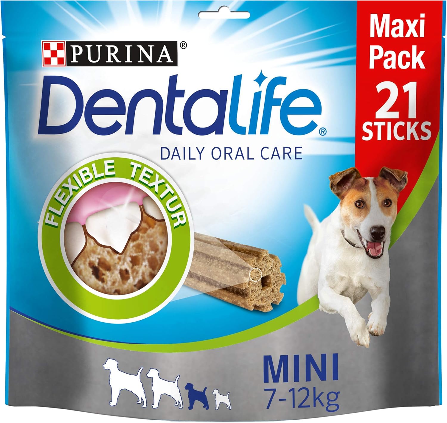 Purina DentaLife Snack soin dentaire idéal pour les petits chiens de 7 à 12 kg – Maxi Pack avec 21 mâchoires par paquet.