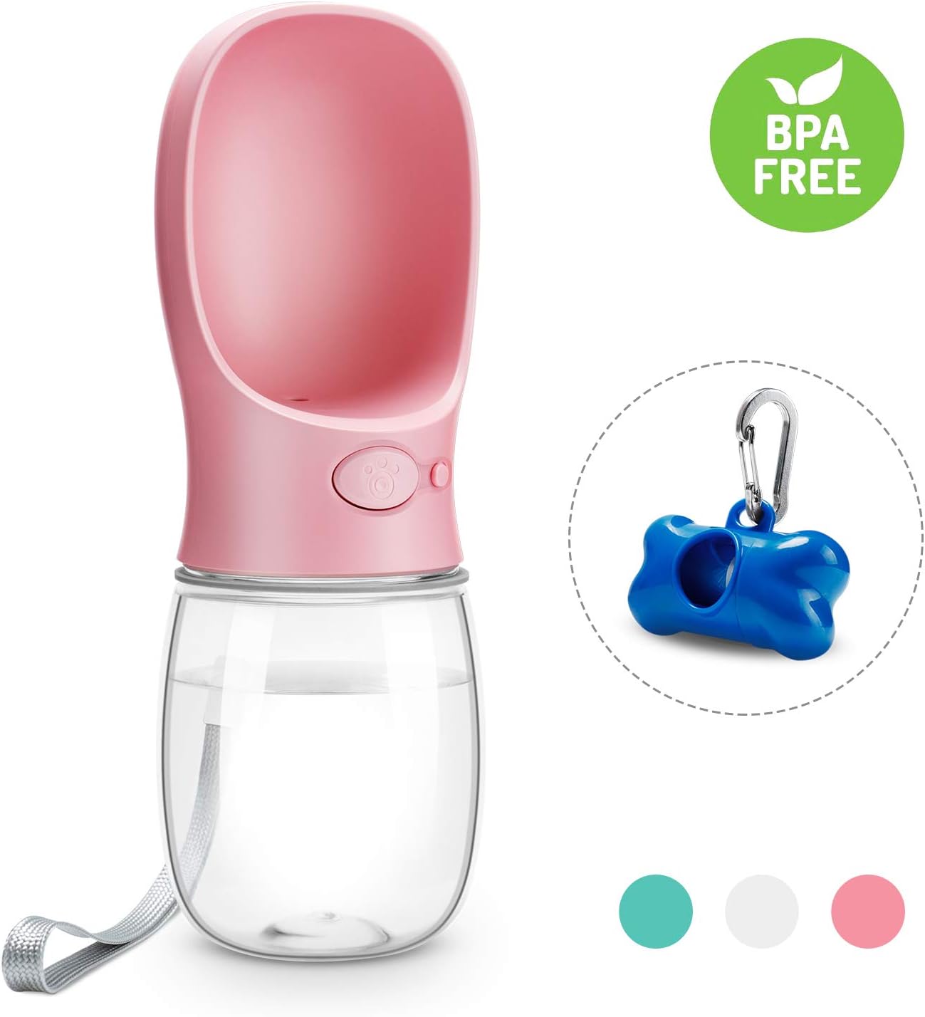Toozey Bouteille pour Chien, Bouteille à Boire Portable de 350 ML Animaux de Compagnie Sac à poussière Chien, Distributeur de Sacs Mousqueton, Bouteille Chats sans BPA, Rose