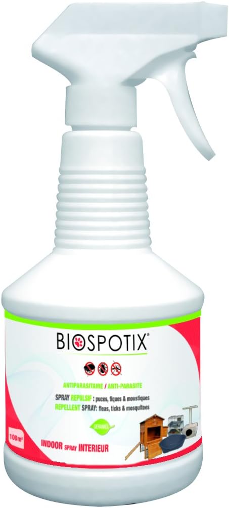 Le spray Biospotix intérieur aide à éliminer les insectes nuisibles et leurs larves de l'environnement de votre animal de compagnie en toute sécurité. Pulvériser le spray aux endroits où votre animal à l'habitude de séjourner (tapis, moquettes, panier, coussins...)