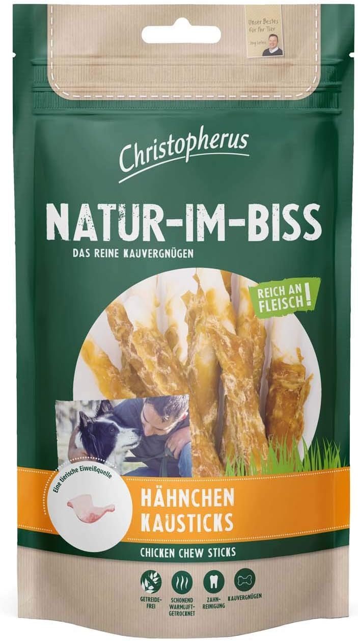 Christopherus Natur-Im-Biss Dog Chews, Chicken Chew Sticks, Hot-Air Dried, 70 g