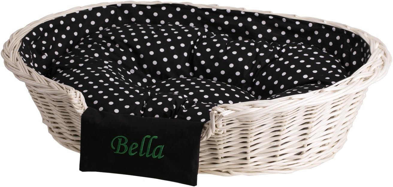 Corbeille, Panier pour Chien ou Chat Ovale en Osier Blanc avec Joli Broderie