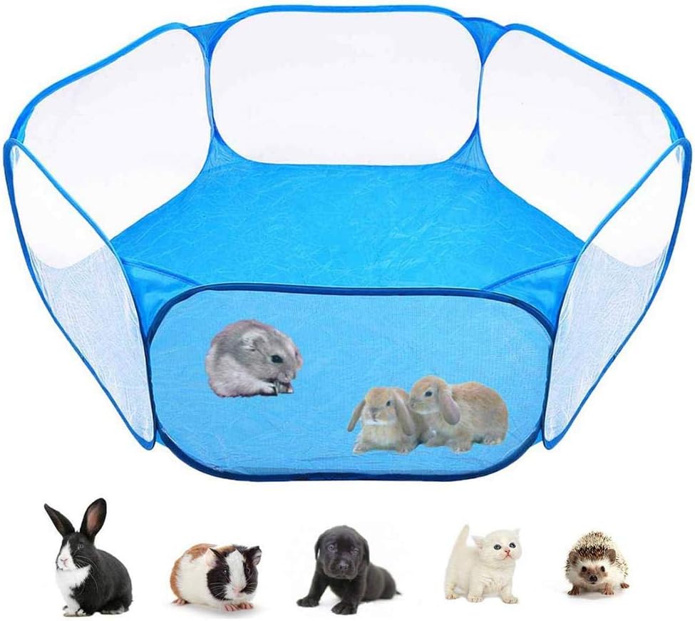 Convient aux petits animaux de compagnie: cette clôture transparente pliable est idéale pour les hamsters, chinchillas, cochons d'inde, souris, gerbilles, furets, écureuils, lapins, reptiles ou autres petits animaux. Fournir une tente sûre pour le petit animal de compagnie.