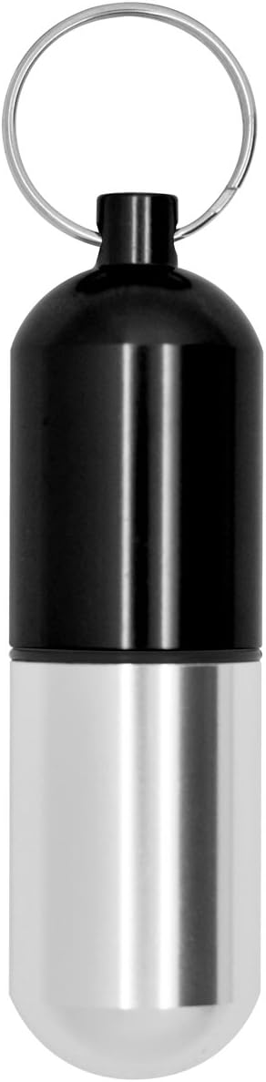 Grenhaven mini-casemate pilules casemate boîte à pilules Cash Box Stash / pill capsule pilules capsule Bouteille de Pilules en différentes couleurs - tailles, boîte trousseau petits imperméables, capsule pilules de bleu / différent Set Alu peut aluminium Porte clés pilulier/cache-billet – étanche/aluminium – argenté/noir - 8 cm