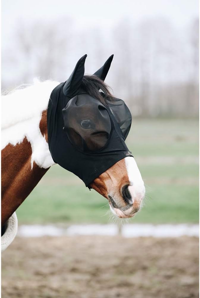 Notre célèbre moustiquaire Slim Fit se compose de tissu lycra pour offrir un ajustement parfait et assurer confort et protection pour le cheval. La protection anti-mouches Slim Fit ressemble à une seconde peau et est très respirante et durable, tout en empêchant les insectes de voler et offre ainsi un confort optimal pour le cheval. Les cache-yeux en mesh extra forts empêchent les irritations des yeux, car ils ne touchent pas les yeux des chevaux. Si elles sont enfoncées à l'intérieur par une action du cheval, elles sortent automatiquement. La protection anti-mouches dispose d'une fermeture éclair, d'un bouton pression et d'une ouverture pour la tête et a été spécialement conçue pour le nettoyage en machine à 30 °C (pas de sèche-linge). -Slim Fit empêche les insectes de s'envoler. Ajustement parfait et une meilleure fermeture éclair confort avec bouton pression - Couvre-yeux en maille extra forte pour éviter les irritations des yeux - Matériau léger et extensible - Respirant et séchage rapide. - Ouverture pour la tête lavable en machine à 30 °C (pas de sèche-linge).