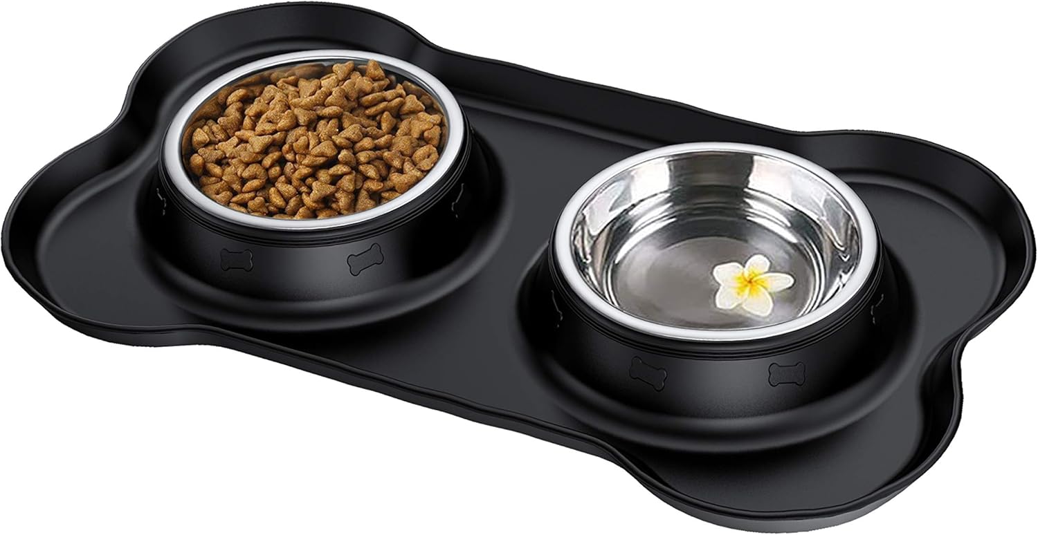 NICREW Gamelle Double pour Petit Chien et Chat, Gamelle en Acier Inoxydable Antidérapante Antidébordement et Antidéversant, Bol Double INOX avec Tapis en Silicone