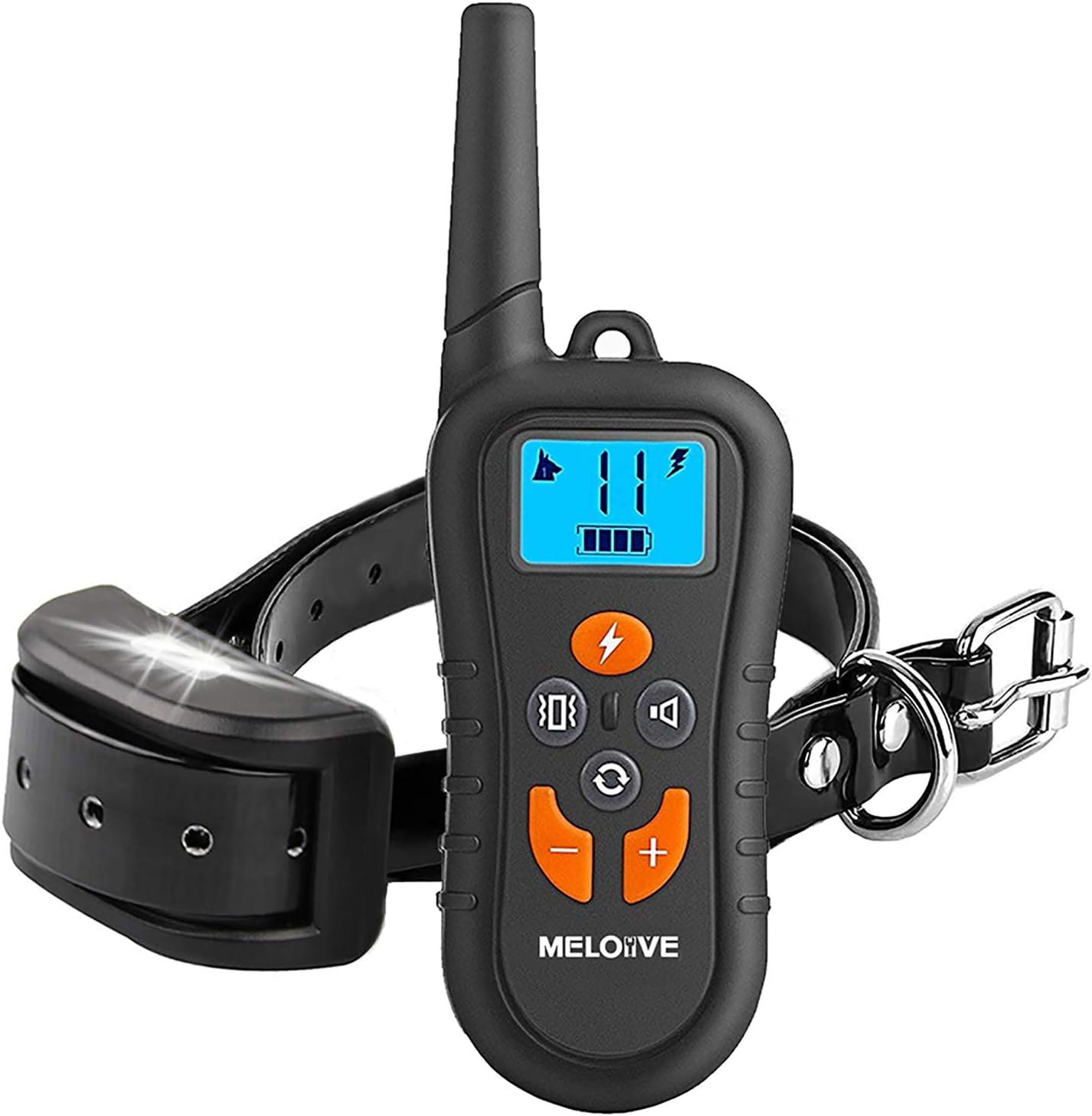 Meloive Collier de Dressage pour Chien Rechargeable et IP67 Étanche avec Distance de 400m avec Mode Vibration, Choc Electrique, Sonore.