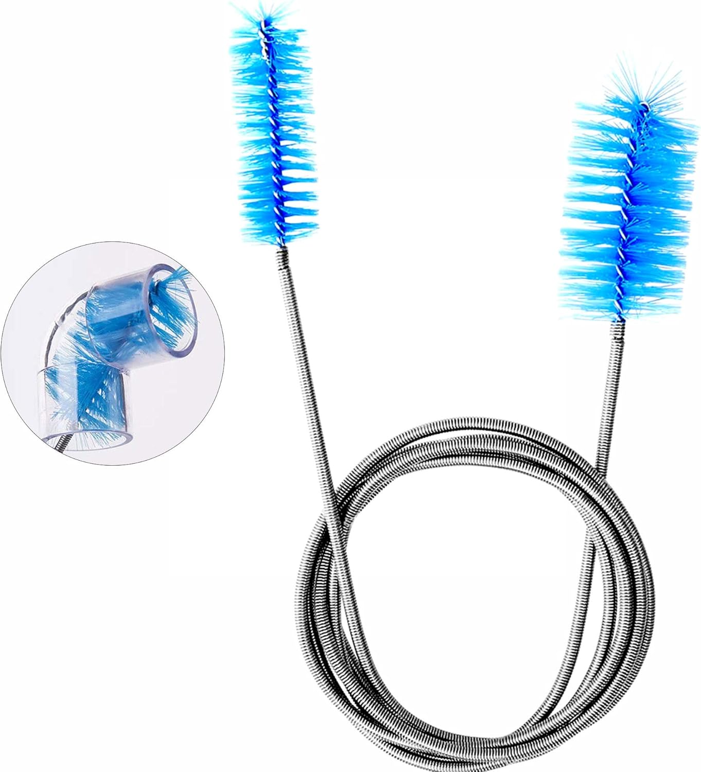 munloo Brosse Nettoyage Aquarium, Brosse Tuyau 155cm, Ressort Acier Inoxydable, Brosse Nylon Double Tête pour Tubes à Essai d'Aquarium, Pailles (Bleu)