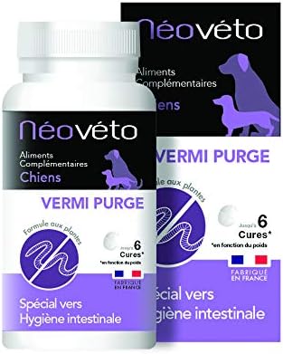 Néovéto VERMIPURGE comprimés naturels à Base d’Actifs agréés par Les Services Vétérinaires Français, fabriqué en France, comprimés appétents pour Chiens Facile à administrer
