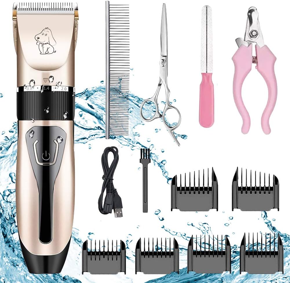 Le colis comprend : tondeuse * 1, ciseaux * 1, lime à ongles * 1, coupe-ongles pour animaux * 1, câble USB * 1, brosse * 1, peigne de limite * 6, peigne en acier inoxydable * 1
