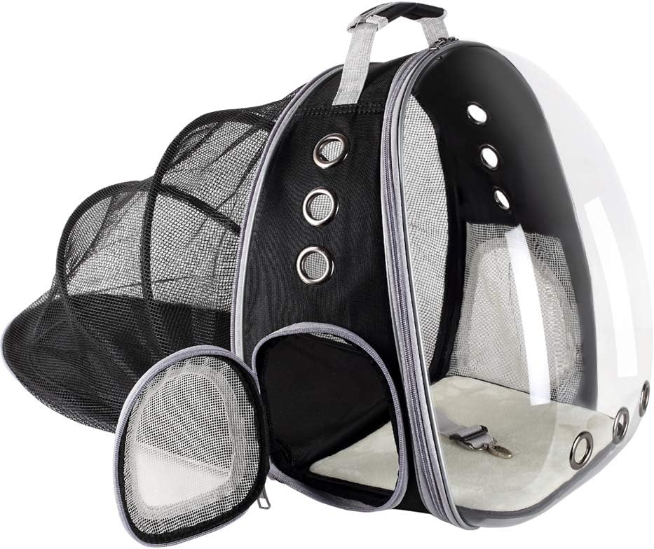 YEAKOO Sac à dos de transport extensible pour animal domestique, imperméable et respirant, design capsule de bulle, sac à dos portable pour chiot, chat et petit chien Noir